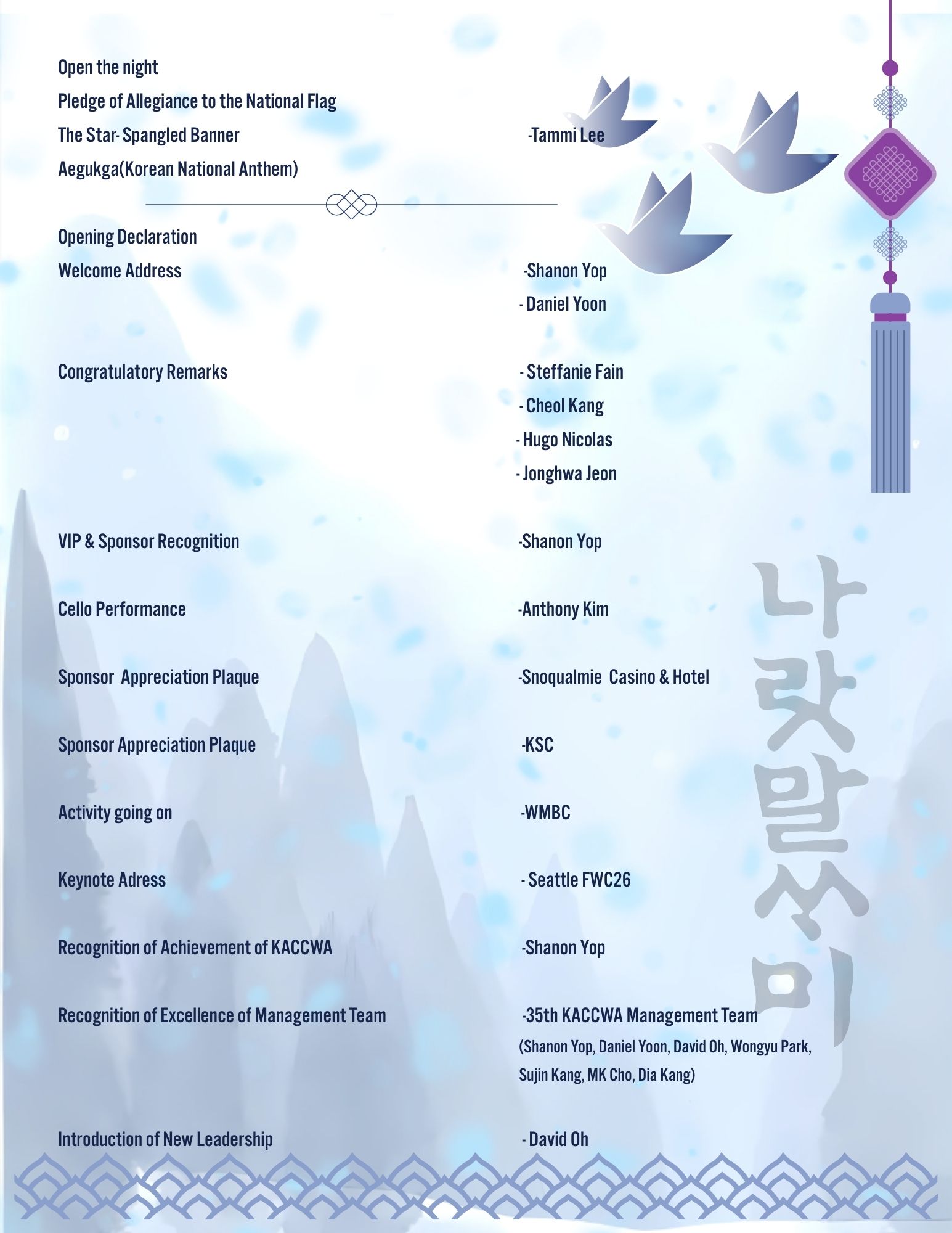 Thank you for joining us at the 2025 KACCWA “Business Night,” and for the encouragement and support you have extended to our Chamber throughout the year.