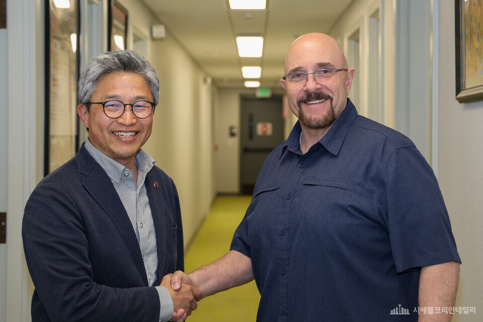 [사진=김승규기자] (왼쪽부터) 오명규 워싱턴주 한인상공회의소 회장과 피터 안사라 대한부인회 사무총장